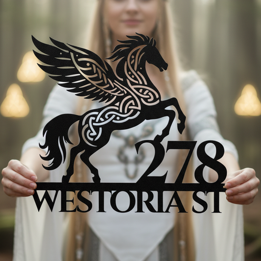 Celtic Pegasus Metal Address Sign
