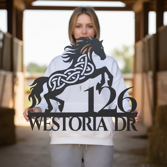 Celtic Horse Metal Address Sign